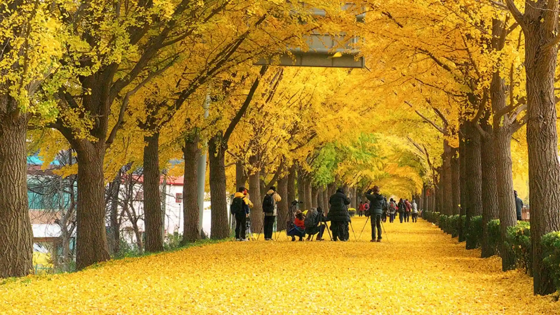 Xe đưa đoàn tham quan địa điểm ngắm lá vàng ngân hạnh (bạch quả) nổi tiếng và lãng mạn nhất Bắc Kinh. Con đường rợp bóng cây ngân hạnh vàng rực rỡ vào mùa thu tạo nên khung cảnh đẹp như tranh vẽ.