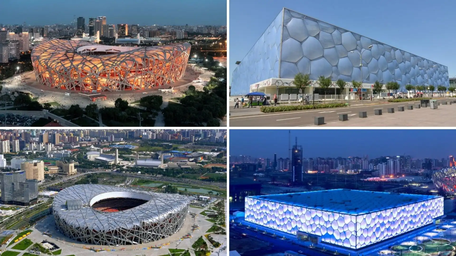 Chụp hình bên ngoài hai công trình kiến trúc biểu tượng của Olympic Bắc Kinh 2008. Sân vận động thiết kế như tổ chim khổng lồ và Trung tâm bơi lội lung linh như những bọt nước xanh thể hiện sự vươn mình của Trung Quốc hiện đại.