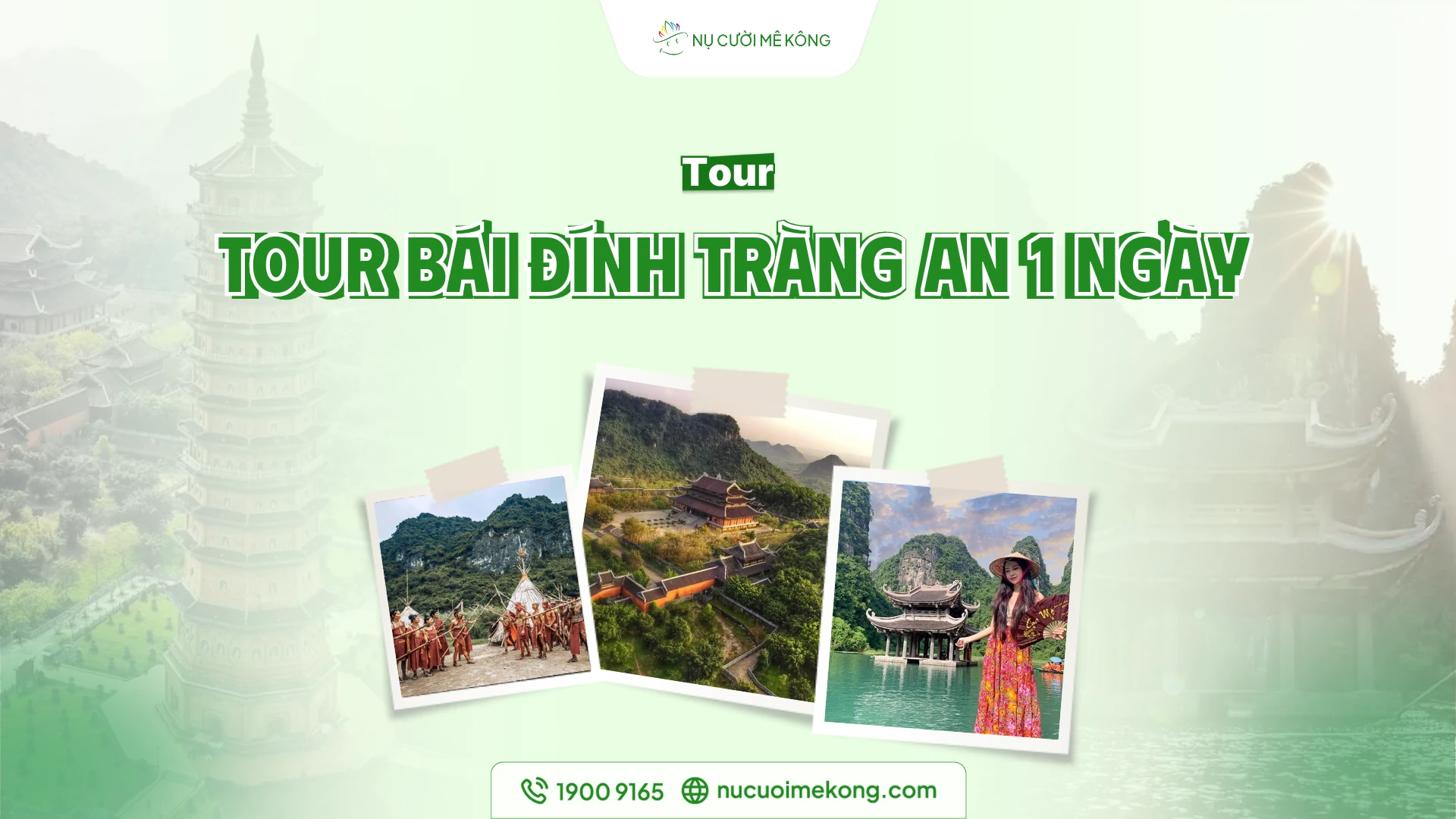 Tour Tour Bái Đính Tràng An 1 ngày là tour ghép và có lịch khởi hành hằng ngày. Tuy nhiên, Quý khách hãy liên hệ trực tiếp với Chuyên viên tư vấn tại Nụ Cười Mê Kông để được hỗ trợ và sắp xếp lịch trình tốt nhất.