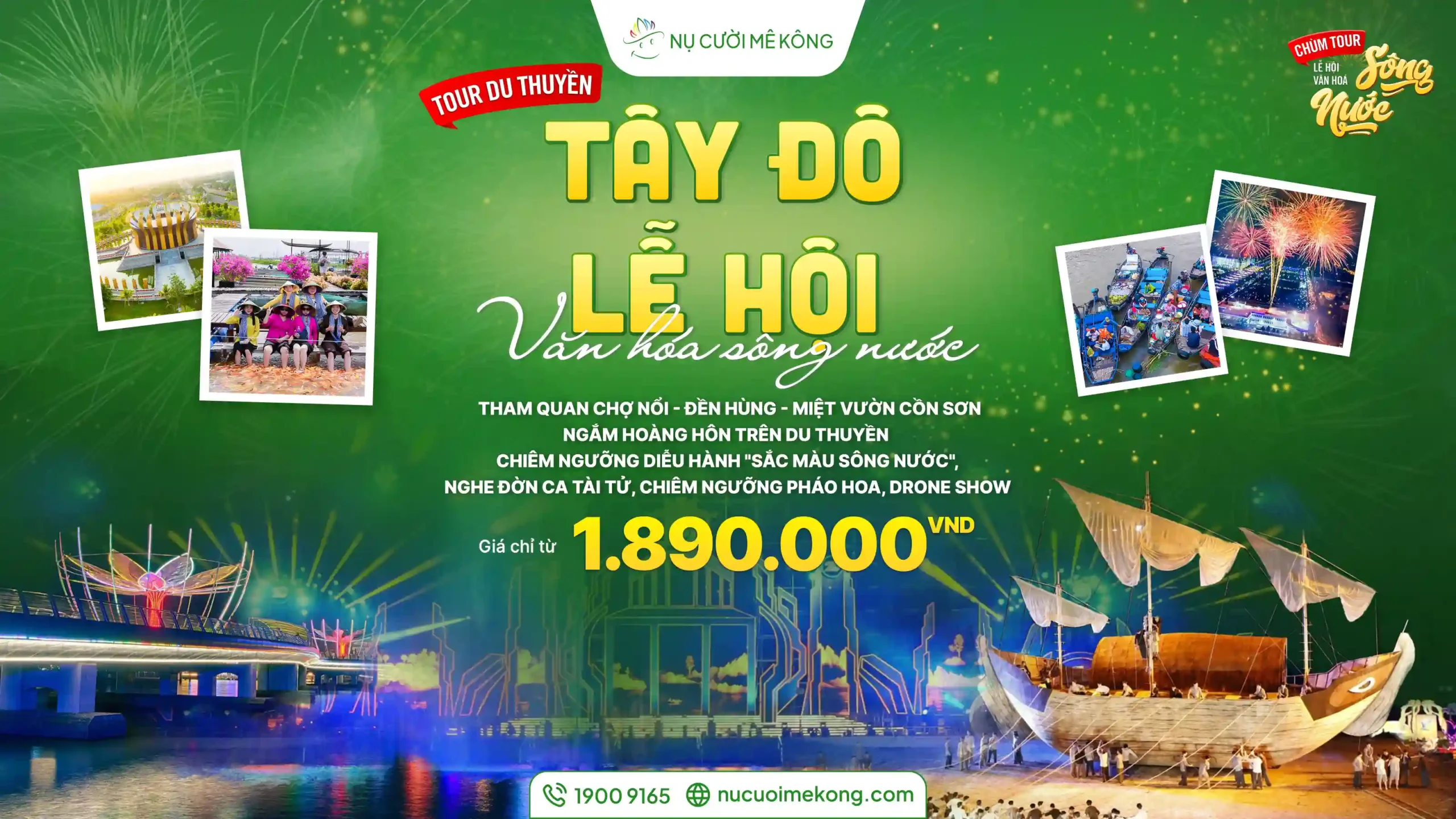 Do số lượng chỗ trên du thuyền và các điểm quan sát lễ hội có hạn, quý khách vui lòng liên hệ trực tiếp qua Hotline 1900 9165 hoặc nhắn tin cho Nụ Cười Mê Kông để được giữ chỗ ngay hôm nay.