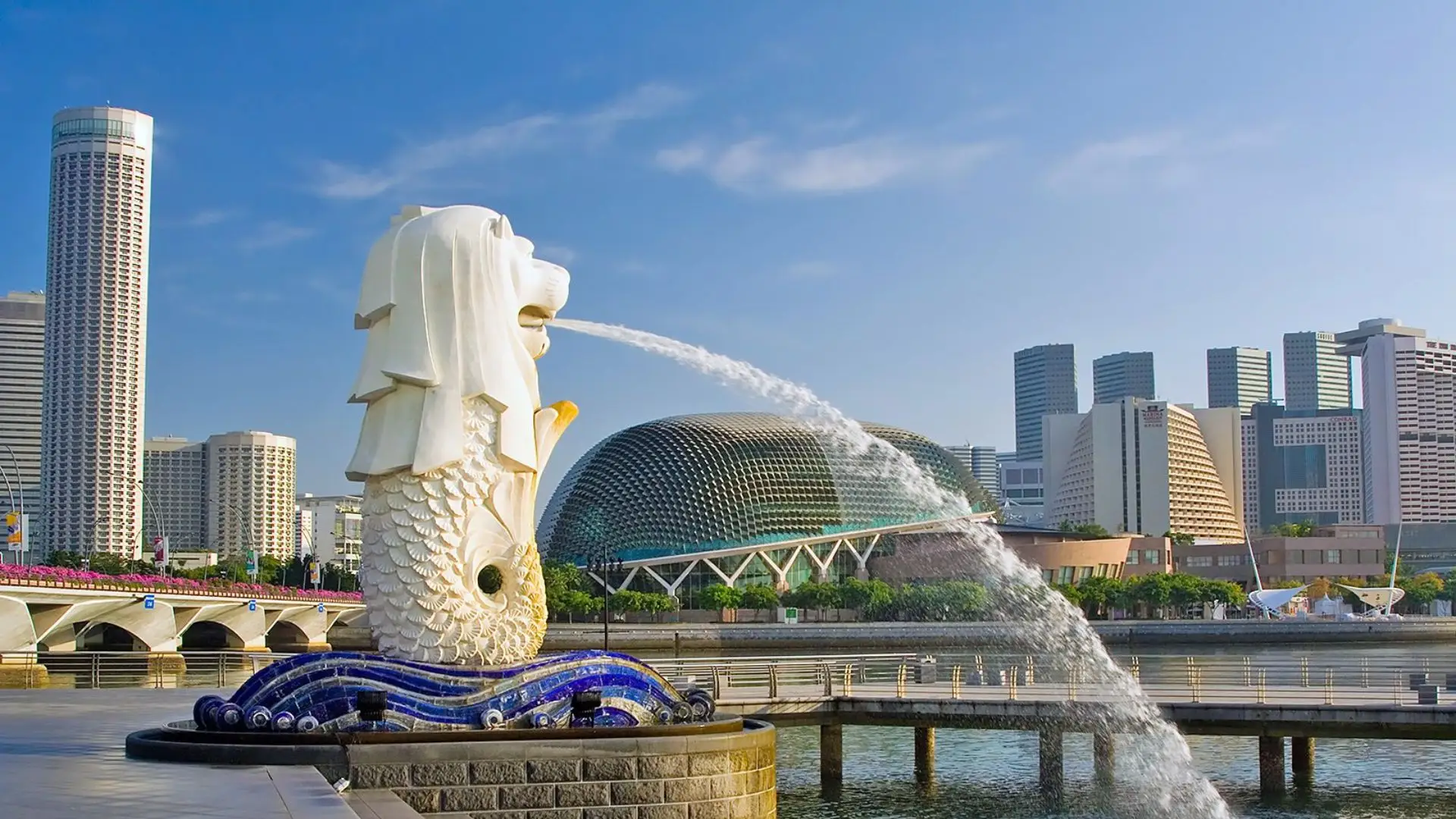 Quý khách chụp hình lưu niệm với bức tượng Sư tử biển phun nước – biểu tượng du lịch huyền thoại của Singapore. Từ đây, quý khách có thể phóng tầm mắt ngắm trọn vẻ đẹp hiện đại và tráng lệ của vịnh Marina với các công trình biểu tượng xung quanh.