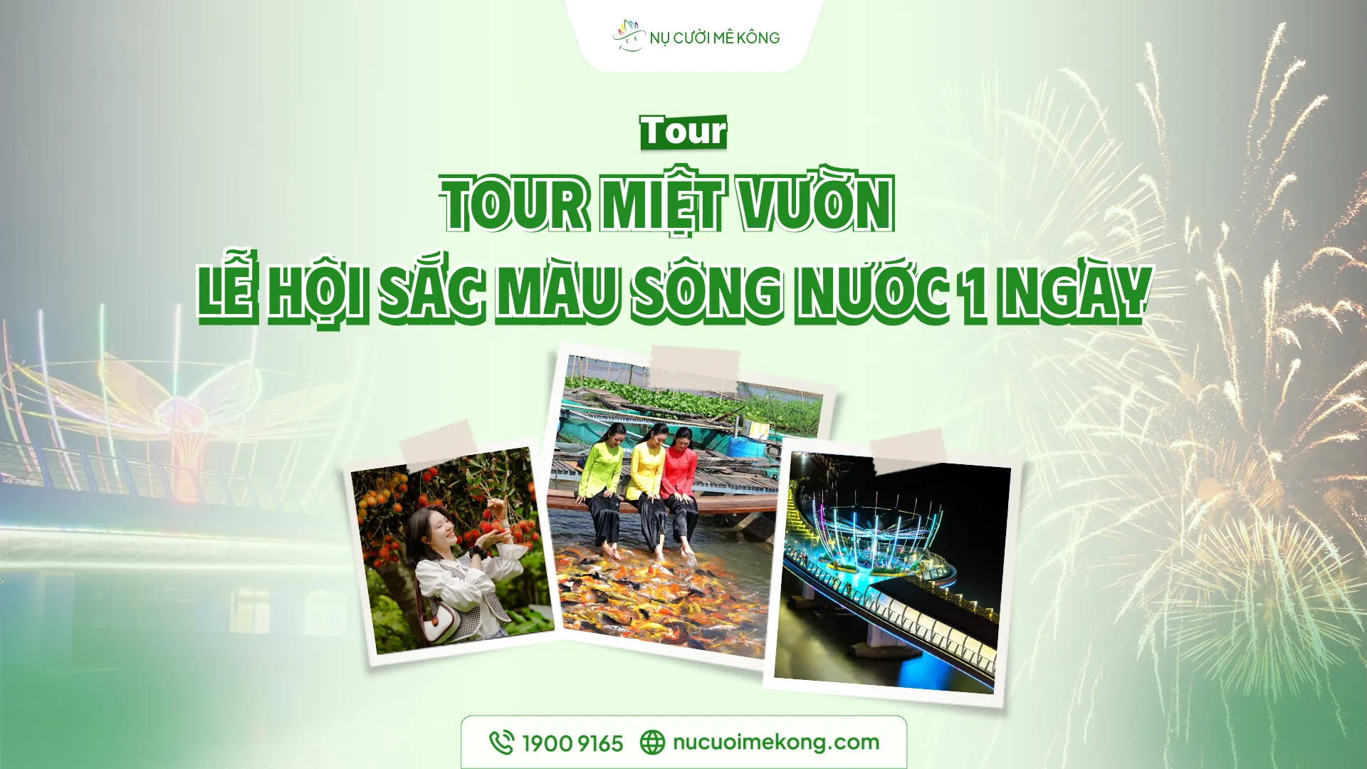 Tour Miệt vườn Lễ hội Sắc màu Sông Nước 1 Ngày: Đêm lễ hội sắc màu có lịch khởi hành duy nhất vào ngày 26/12/2025 (Ngày khai mạc Lễ hội Sắc màu sông nước. Ngày hội thu hút hàng ngàn du khách trong và ngoài Việt Nam đến với Cần Thơ, nên để có một hành trình trọn vẹn nhất mà không lo hết chỗ vào cận ngày, Quý khách hãy liên hệ trực tiếp với Nụ Cười Mê Kông để được chuyên viên ưu tiên hỗ trợ sớm nhất.