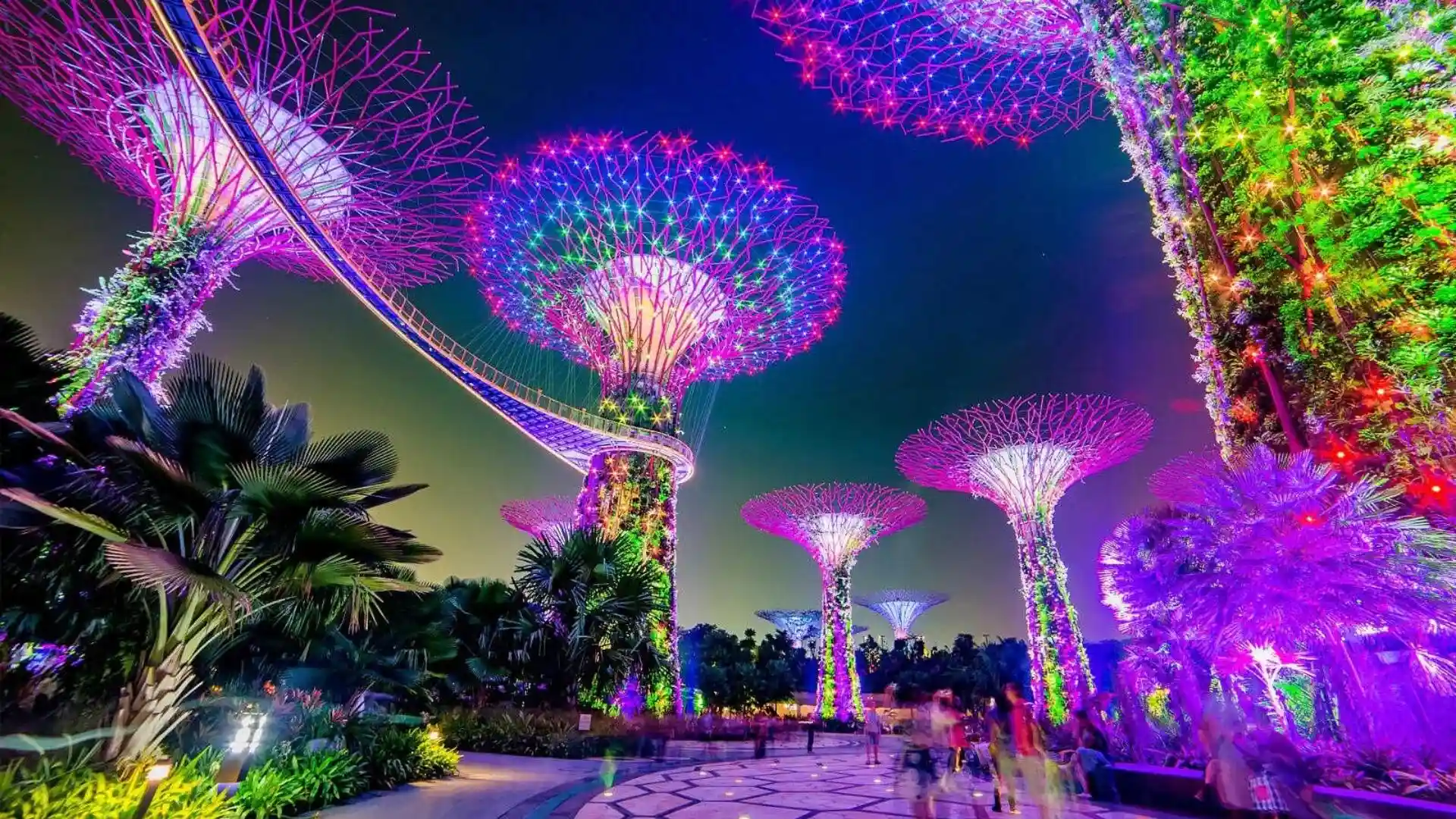 Tham quan khu vườn nhân tạo khổng lồ rộng hơn 100ha bên vịnh Marina, nơi quy tụ hàng ngàn loài thực vật quý hiếm từ khắp nơi trên thế giới. Điểm nhấn đặc biệt là các Siêu cây (Supertrees) khổng lồ cao từ 25-50m với thiết kế độc đáo, có khả năng tổng hợp năng lượng mặt trời vào ban ngày và tỏa sáng rực rỡ vào ban đêm.